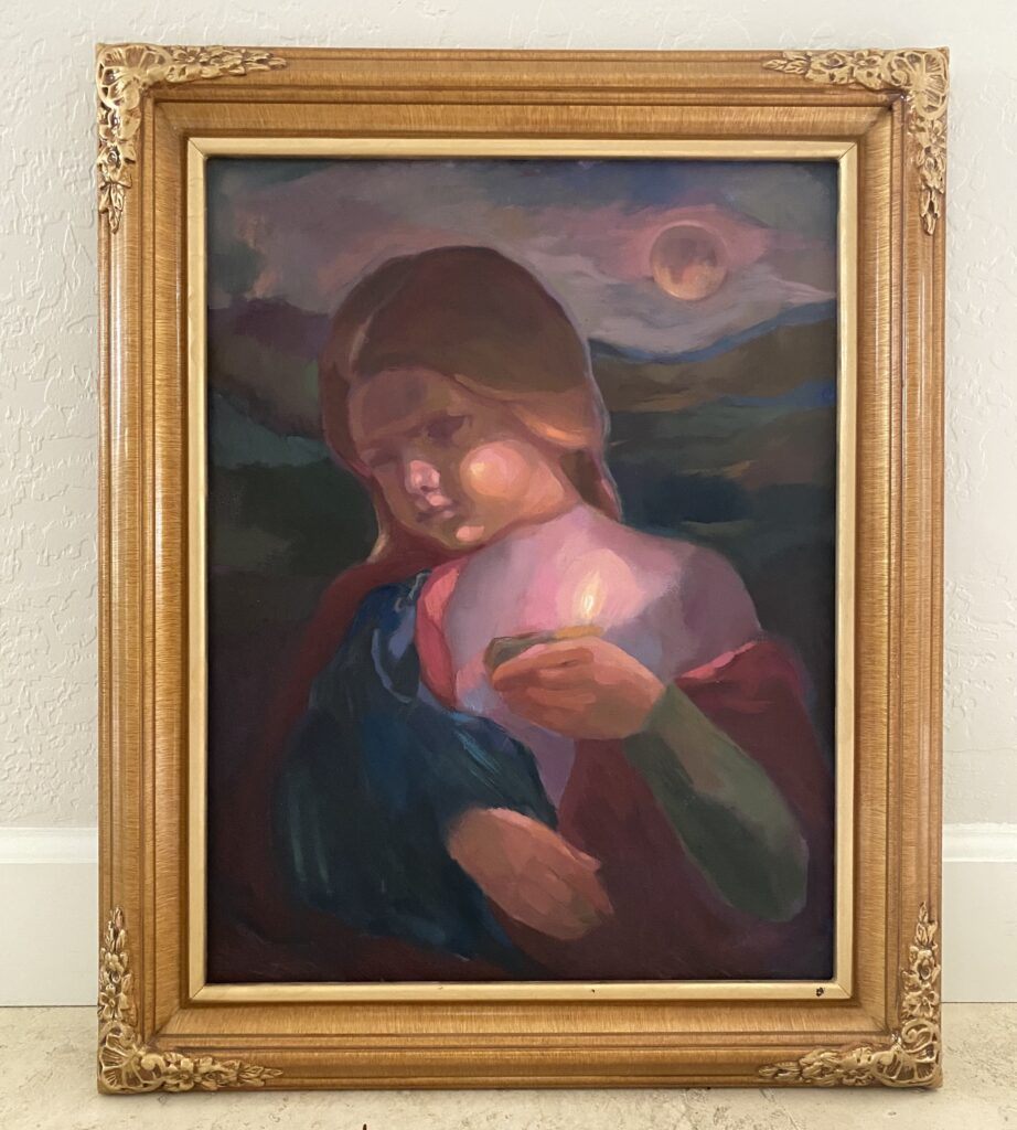 Here is Gerda, holding a small flame, walking through the darkness. The tame crow guides her way, but it is her light that leads her home to Kai.