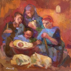 In this painting, I’ve blended two contrasting elements: the innocence and tranquility of childhood with the harsh realities of the future.